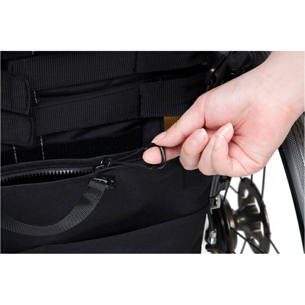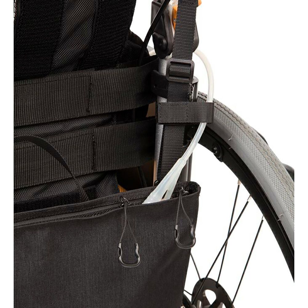 導尿チューブがタイヤに当たらないように、まとめるためのテープが付いているので安全安心。