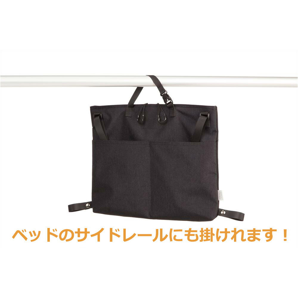 上部のバックルを使えば、ベッドのサイドレールに掛けて使用できます。サイズ 高さ31cm、横幅36cm、マチ幅4cm 素材 (外装)ポリエステル600dnオックス、(内装) PVC加工 備考 発売元:株式会社グローバルプロジェクト メーカー エース ブランド HIBINO by soelte JANコード 4573403769356