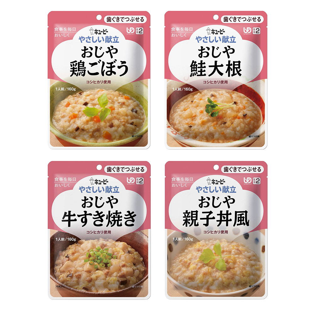 人気の味4種類各2袋をセットにしました。内容量 おじや 親子丼風・おじや 鮭大根・おじや 牛すき焼き・おじや 鶏ごぼう 各160g×2袋 アレルゲン おじや 親子丼風(卵・小麦・大豆・鶏肉)