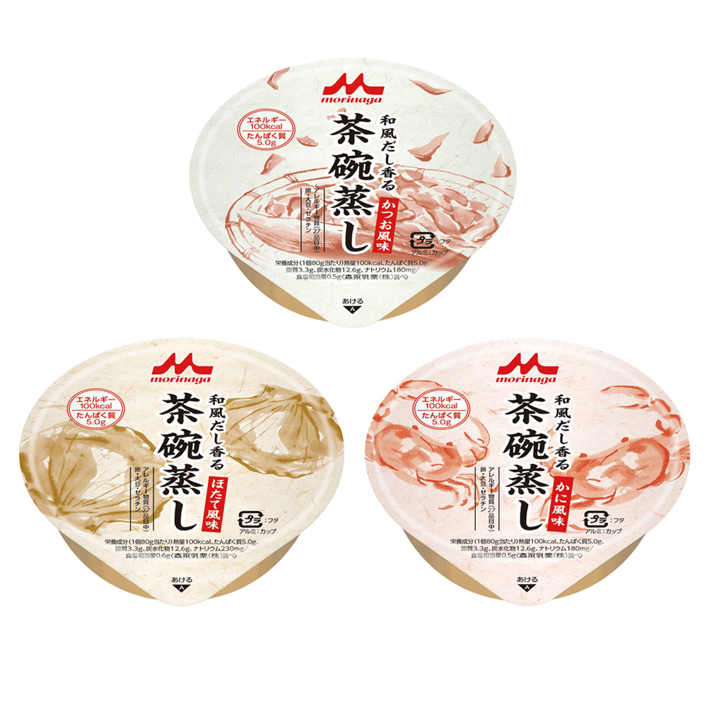 かつお風味:エネルギー100kcal、たんぱく質5.0g、脂質3.3g、炭水化物12.6g、塩分0.46g