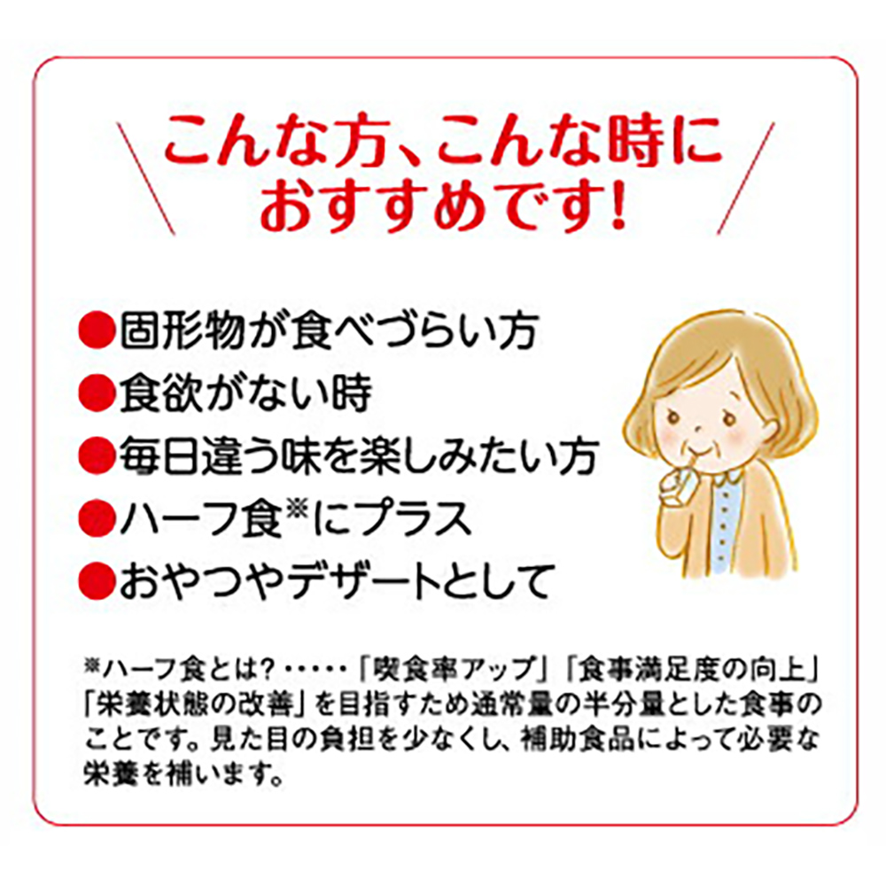 ●使用開始時は、少量または低濃度(0.5~1kcal/ml前後)とし、腹部症状等に注意しながら使用してください。