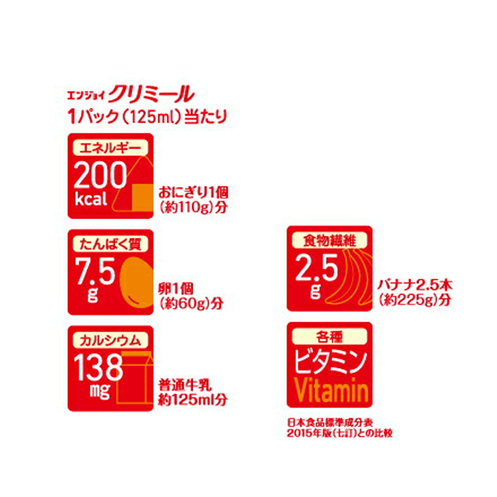 直射日光があたる場所や、高温な場所、凍結するような場所で保管しますと、風味劣化等の性状変化が認められる場合があります。栄養成分・カロリー 各味:1本(125ml)当たり