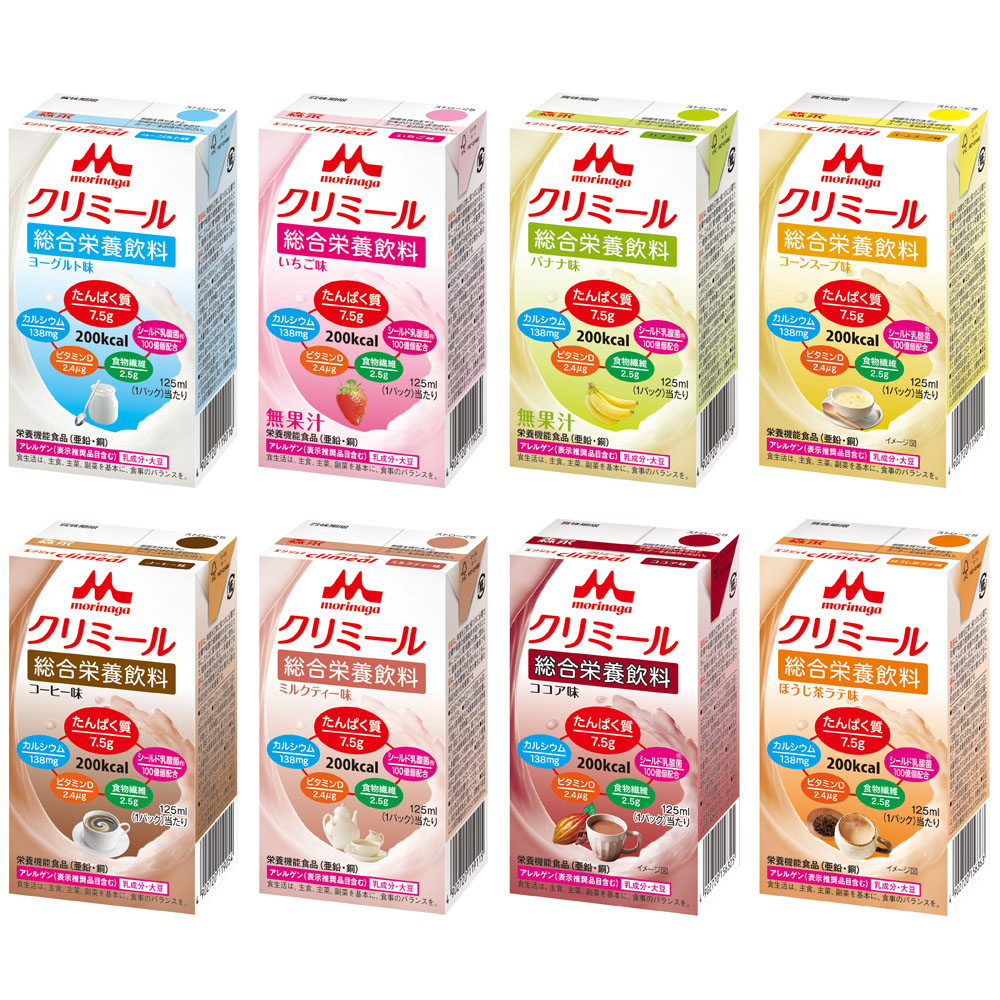 - バナナ味・ココア味・ミルクティー味・ヨーグルト味・いちご味・ほうじ茶ラテ味・コーヒー味・コーンスープ味の8種類×3本ずつのセットとなります。