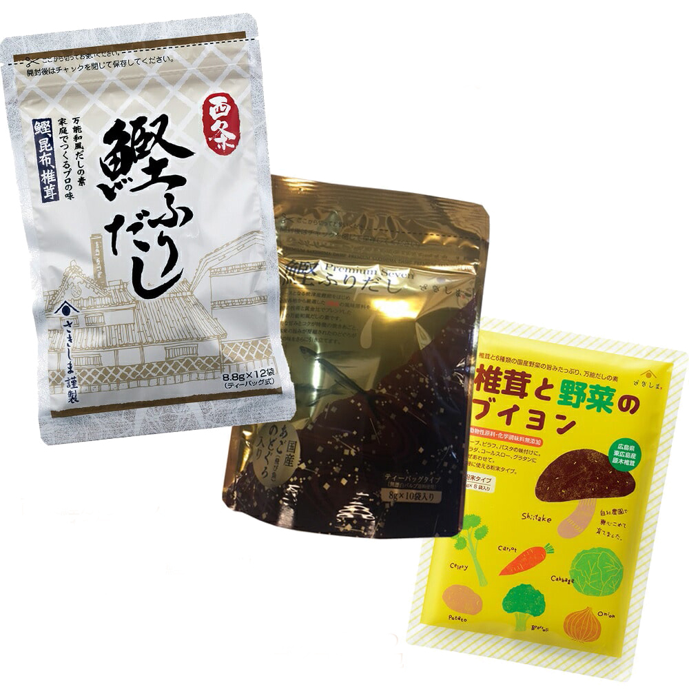 【椎茸と野菜のブイヨン】4g×8包原材料 【西条鰹ふりだし】:食塩、砂糖、鰹節粉末、煮干うるめ鰯粉末、鰹だし顆粒、粉末醤油、昆布粒、食用植物性油脂、調味料(アミノ酸等)、(原料の一部に小麦、大豆を含む)