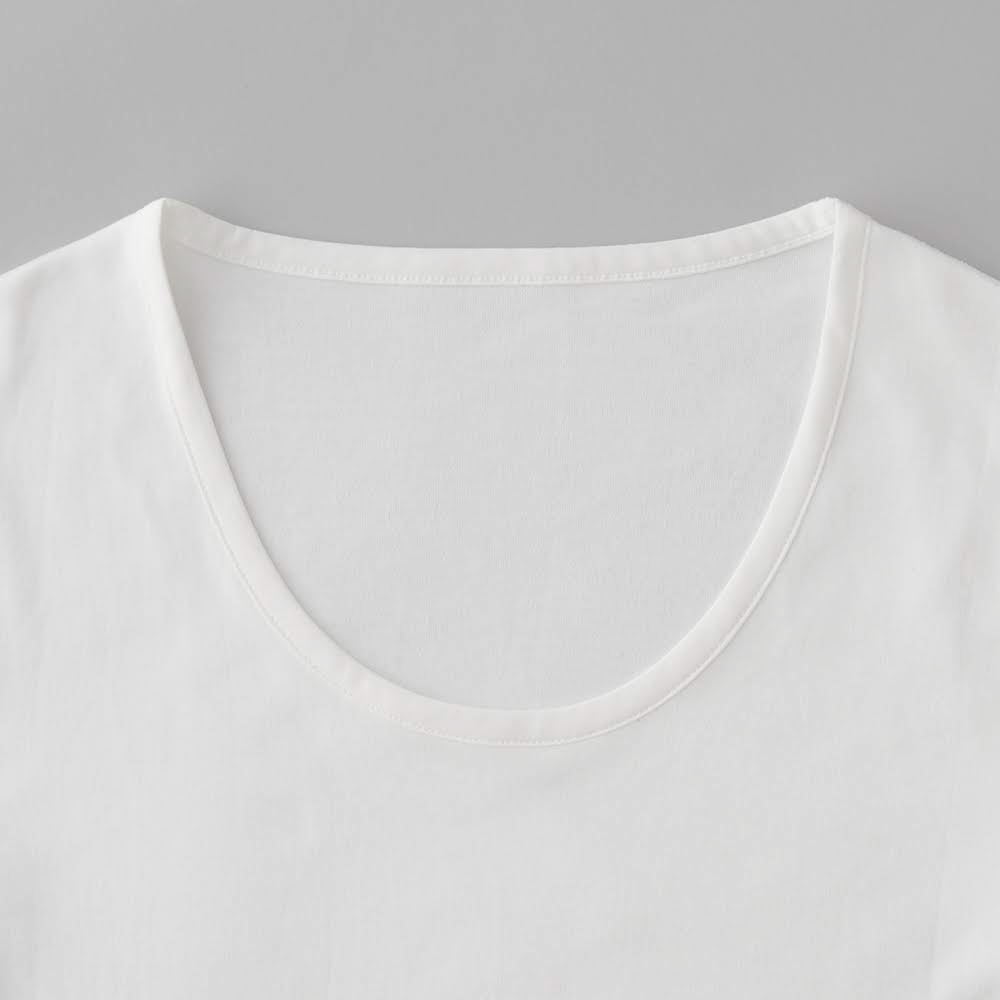 人の身体に沿って、前後ある普通のTシャツに見える画期的な仕組み。