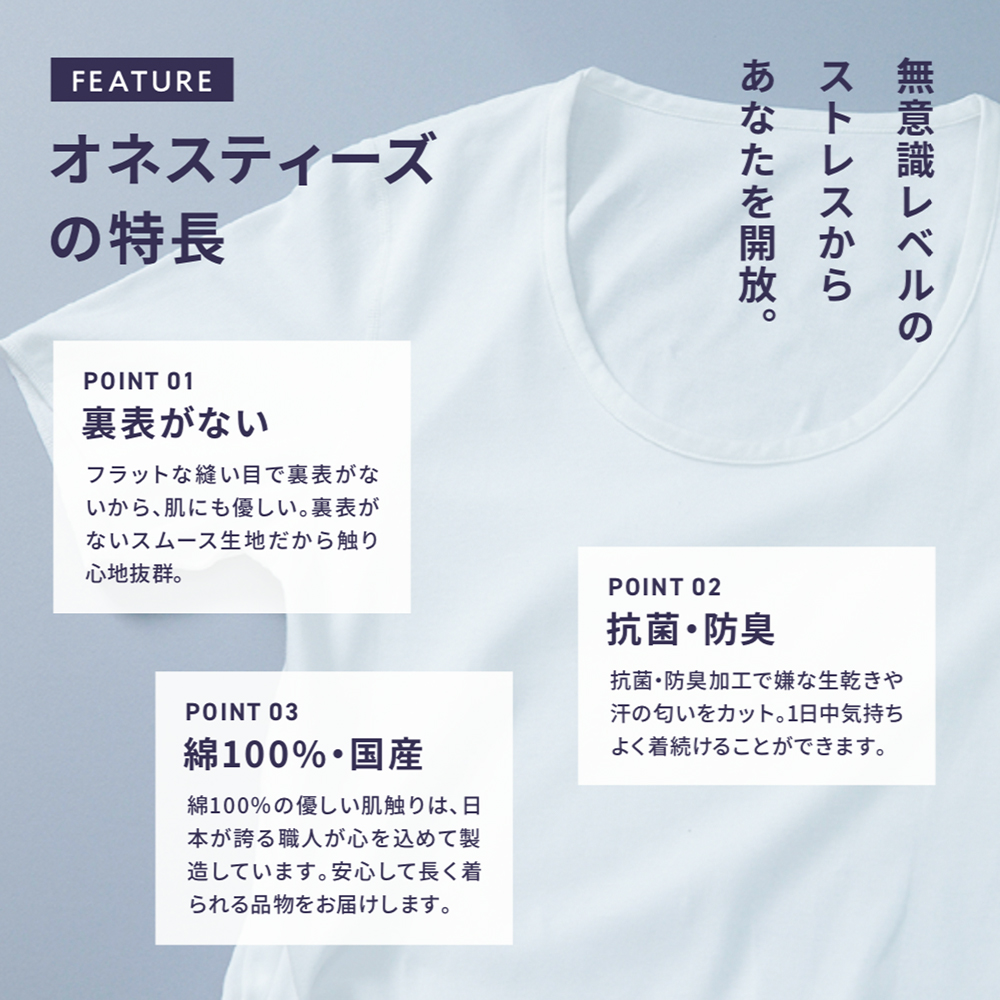 - 「オネスティーズ」は裏表のない初めてのスマート肌着。