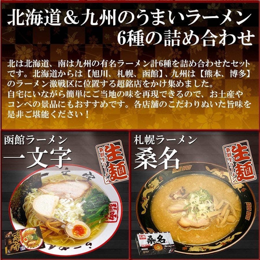 - 北は北海道、南は九州の有名ラーメン計6種を詰め合わせたセットです。