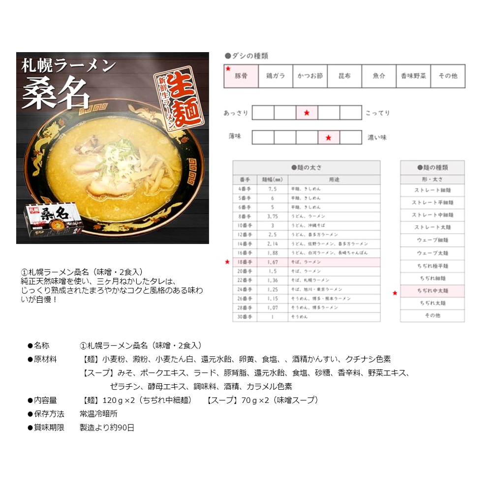 【札幌ラーメン桑名(味噌)】麺:120g×2(ちぢれ中細麺)、スープ:2袋
