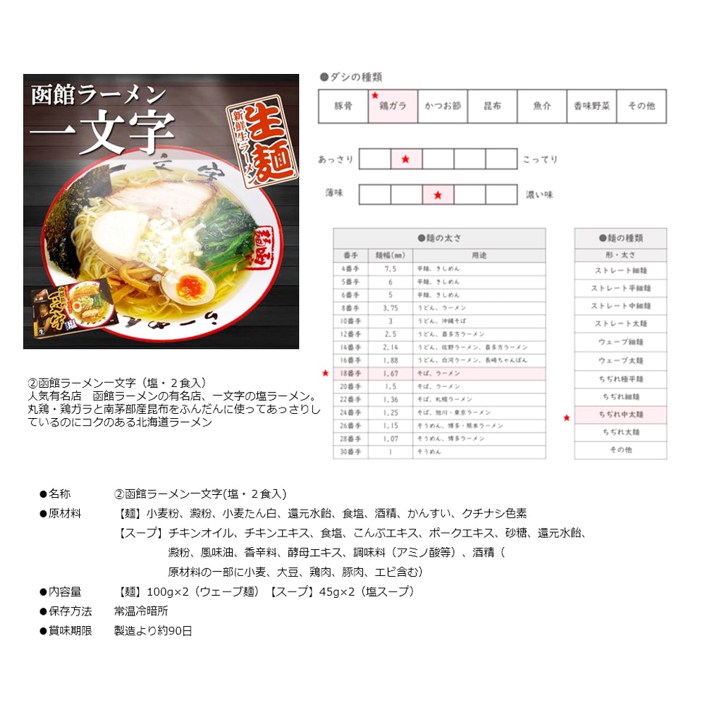 【函館ラーメン一文字(塩)】麺:100g×2(ウェーブ麺)、スープ:2袋