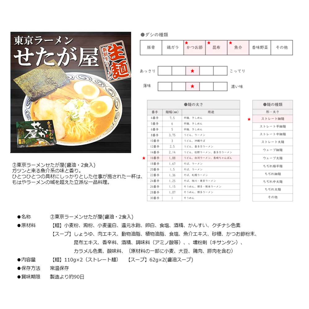 【東京ラーメンせたが屋(醤油)】麺:110g×2(ストレート麺)、スープ:2袋