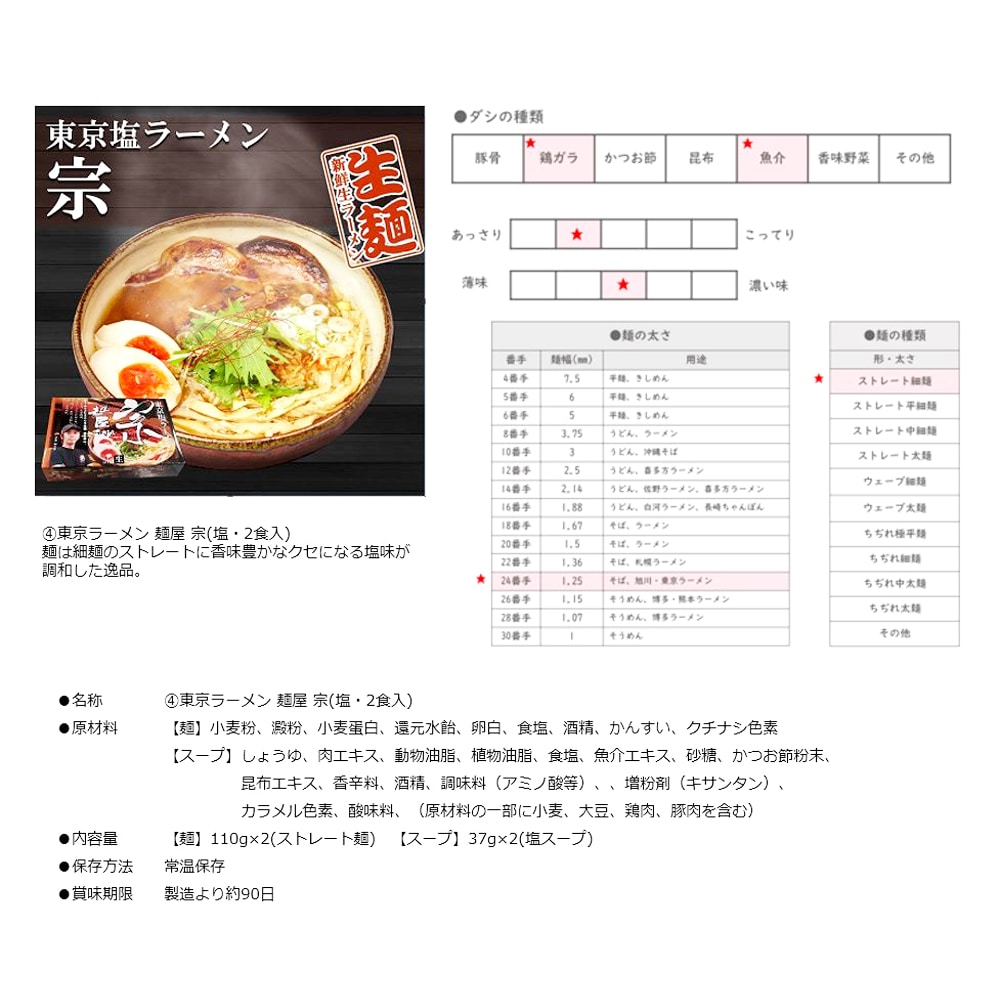 【東京ラーメン 麺屋 宗(塩)】麺:110g×2(ストレート麺)、スープ:2袋
