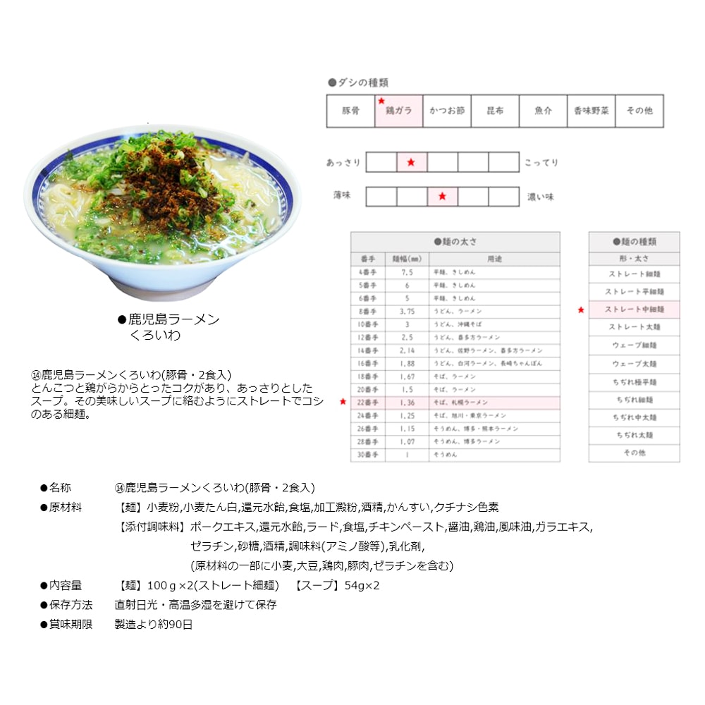 【鹿児島ラーメンくろいわ(豚骨)】麺100g×2(ストレート細麺)、スープ:2袋アレルゲン 札幌ラーメン 桑名(小麦・卵・乳成分・大豆・豚肉)