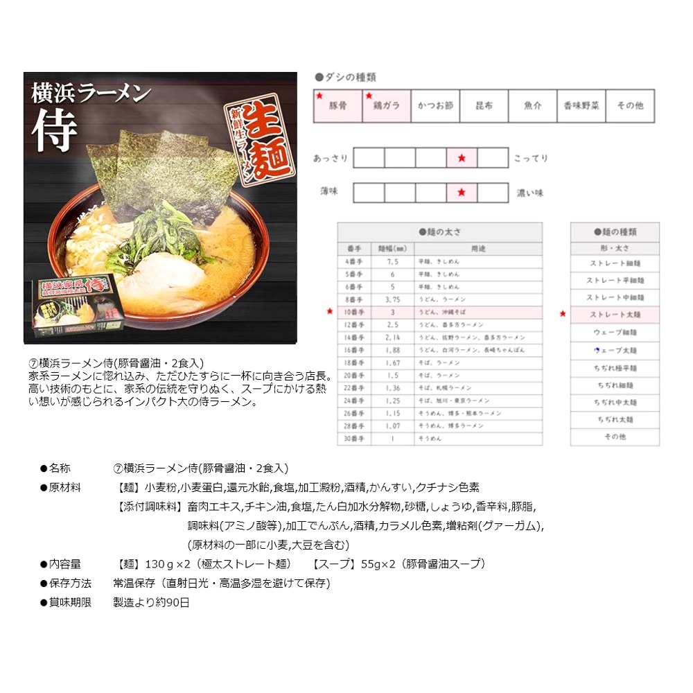 【横浜ラーメン侍(豚骨醤油)】麺:130g×2(極太ストレート麺)、スープ:2袋