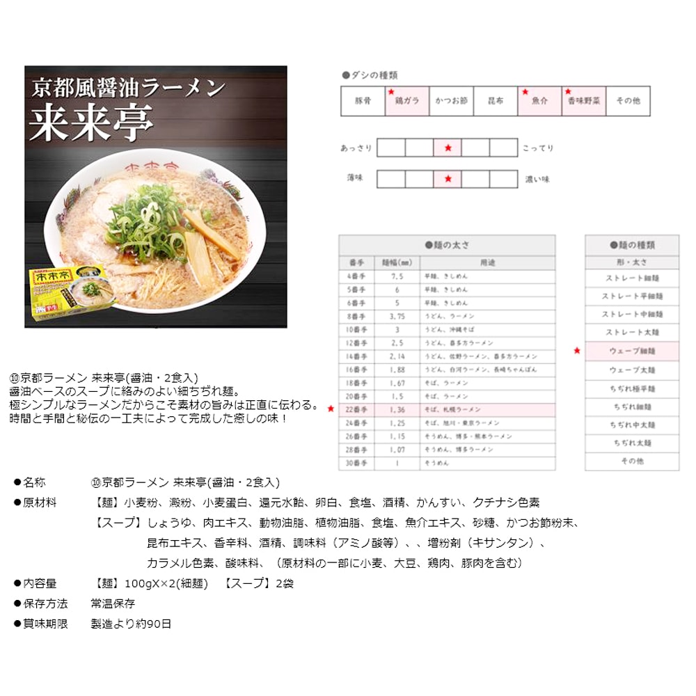 【京都ラーメン 来来亭(醤油)】麺:100g×2(細麺)、スープ:2袋