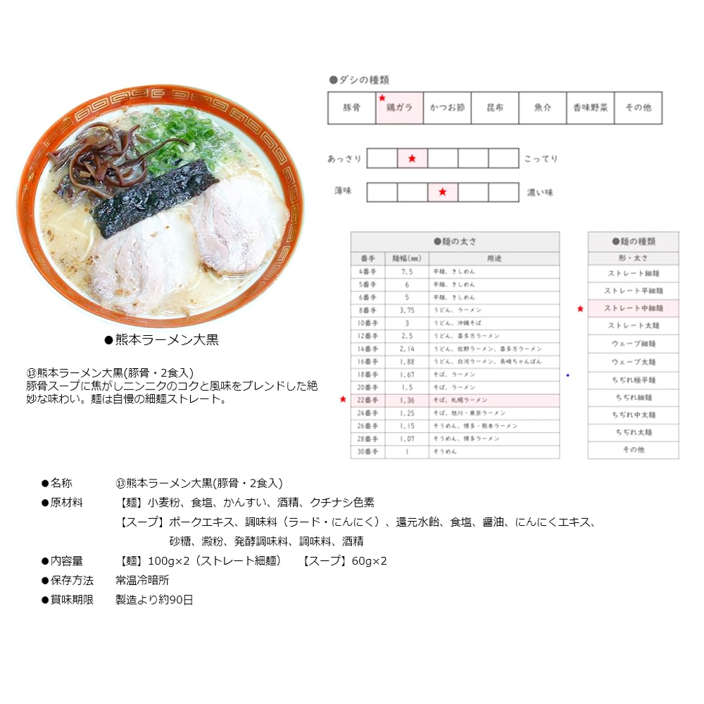 【熊本ラーメン大黒(豚骨)】麺:100g×2(ストレート細麺)、スープ:2袋