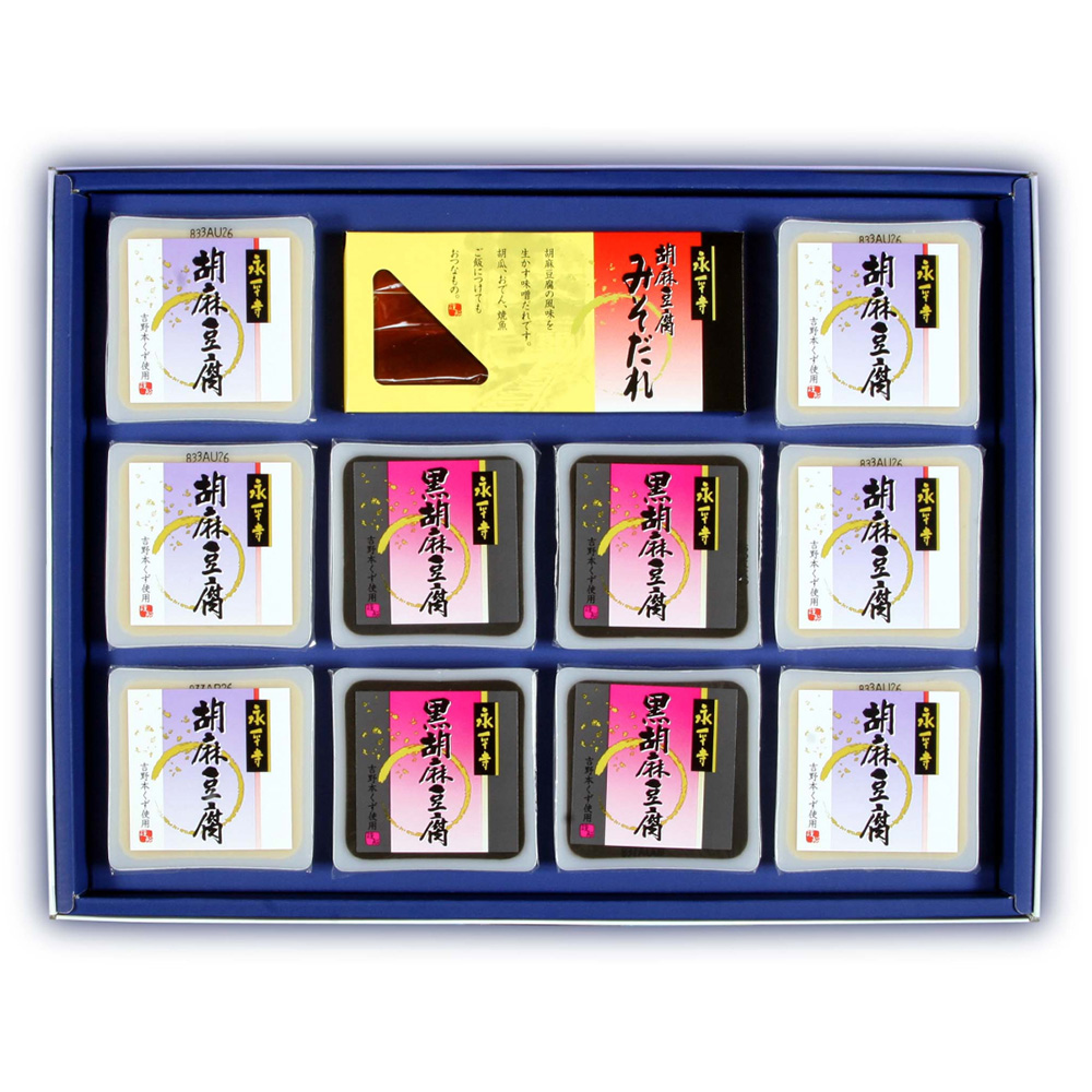 - ごま豆腐は仏教の伝来とともに禅僧によって中国から伝えられ、精進料理として広く使われています。ごま、吉野本葛等をじっくり練り上げました。ごまの香ばしい風味と、本葛の滑らかな舌ざわりをご賞味ください。
