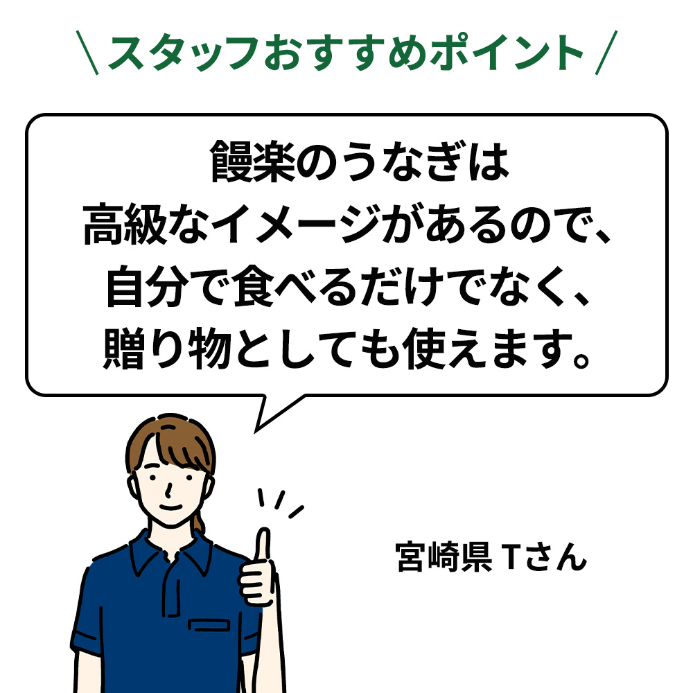 - 熟練した養鰻家たちの手で大切に育てられた良質な九州産うなぎの中からさらに饅楽独自の試食検査で厳選。