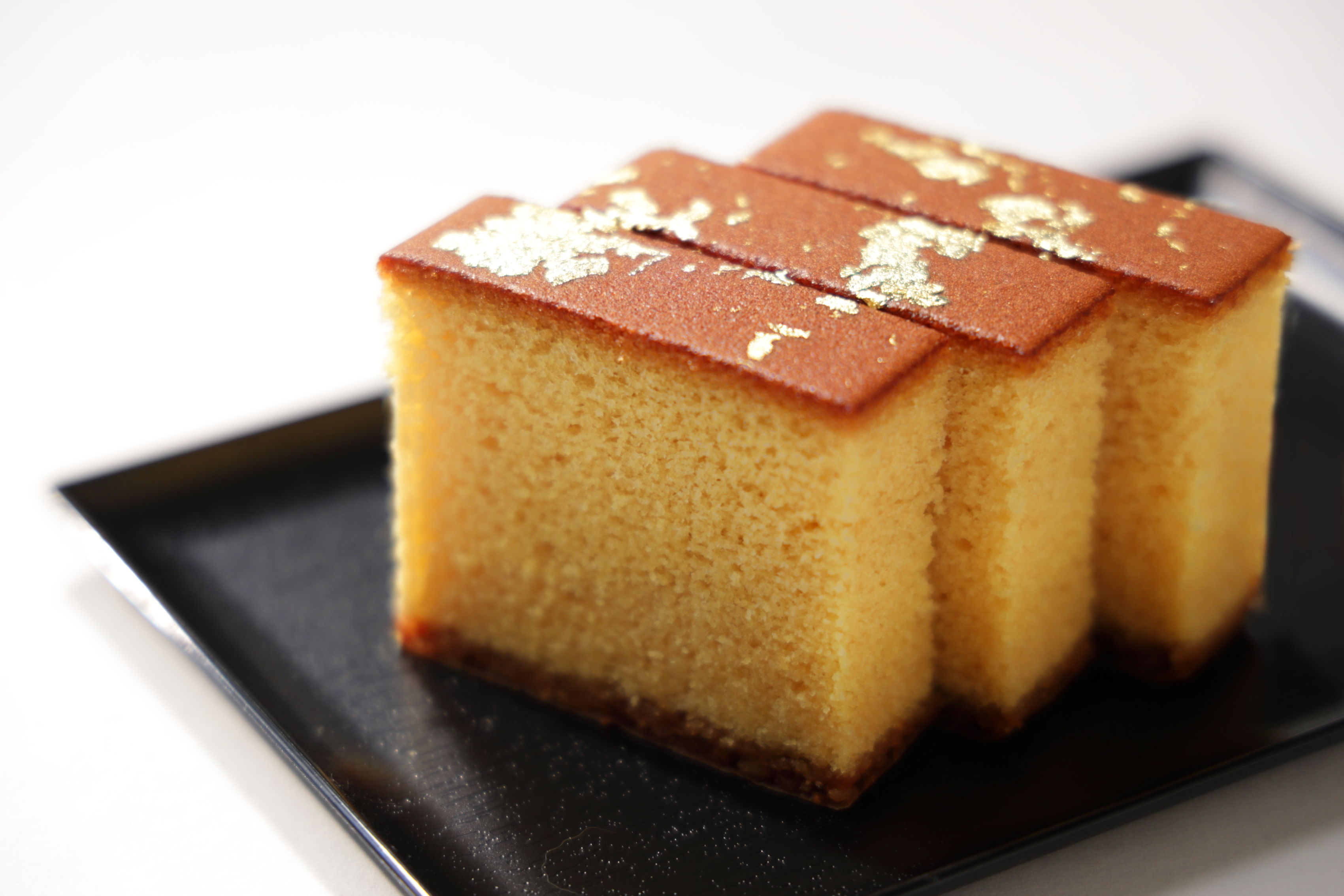 ・カステラの底面に白い斑点が見られる場合がありますが、これはざらめ糖が溶けたもので安心してお召し上がりいただけます。