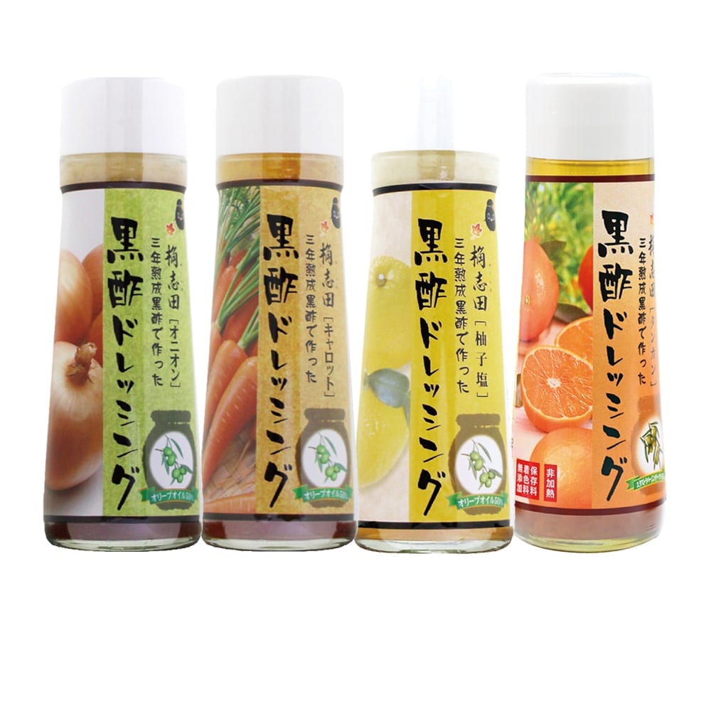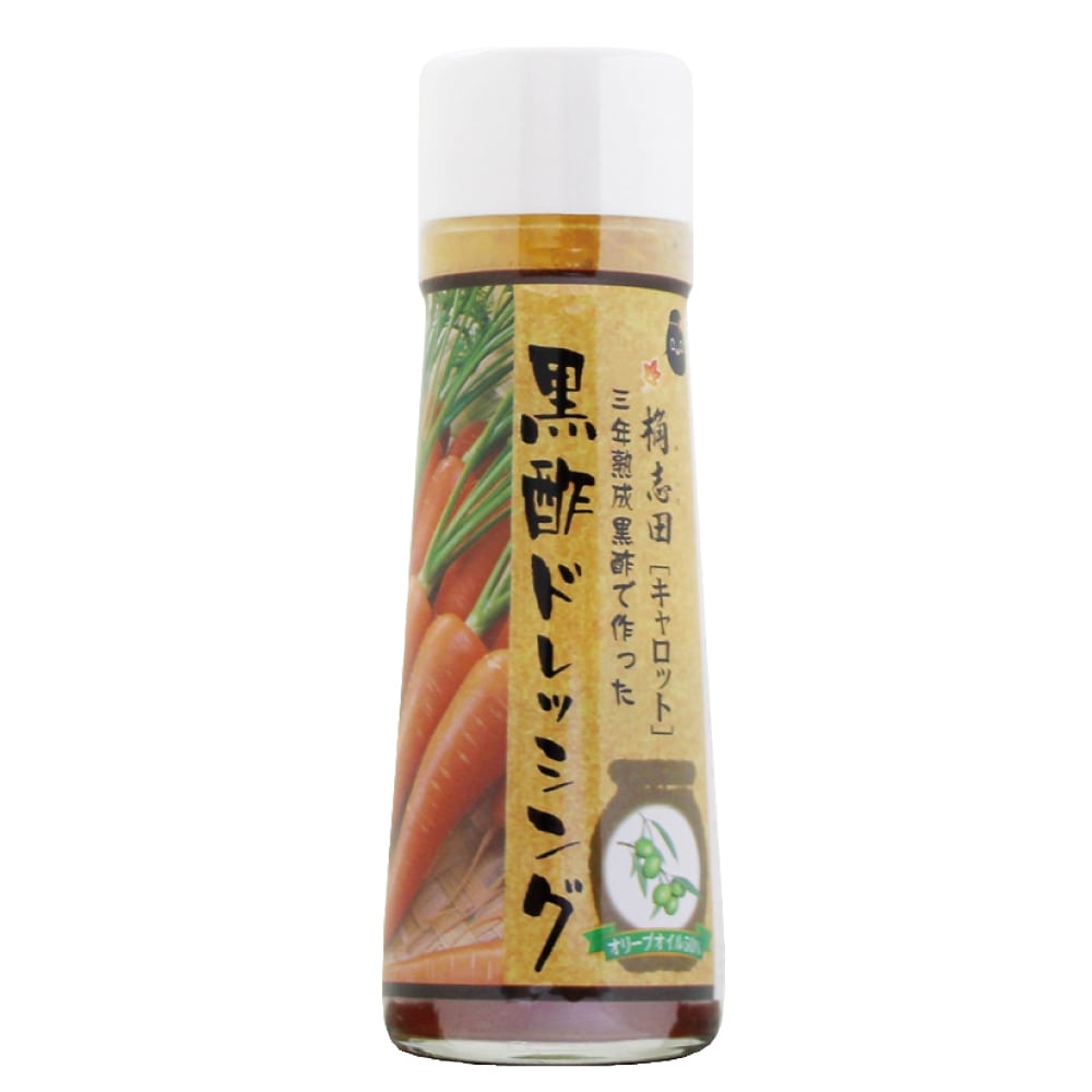 原材料:有機米黒酢(鹿児島県霧島市福山町産)、食用植物油脂(オリーブオイル・グレープシードオイル)、有機醤油(国産)、有機人参(国産)、玉ねぎ(国産)、粗糖(国産)、にんにく、胡椒