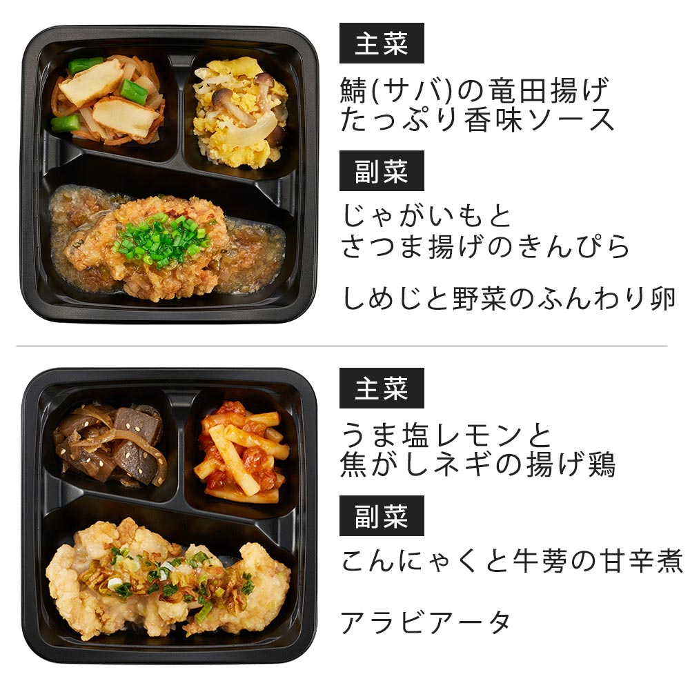 (鯖(サバ)の竜田揚げ たっぷり香味ソース107g・うま塩レモンと焦がしネギの揚げ鶏112g・食欲そそる鶏肉のカレーソース129g・白身魚の和風オニオンソース110g・濃厚トマトのハッシュドポーク130g)アレルゲン 鯖(サバ)の竜田揚げ たっぷり香味ソース(卵・小麦・乳成分・さば・大豆・ごま・鶏肉)