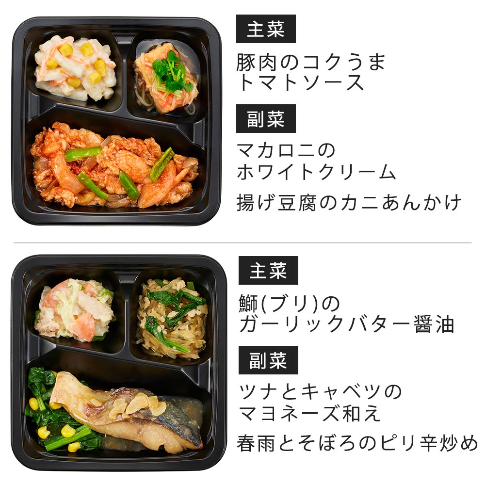 (赤ワインが決め手!デミグラスハンバーグ141g・鰤(ブリ)の韓国風味噌煮103g・豚肉のピリ辛南蛮炒め130g・コクと旨味のクリームシチュー130g・柚子胡椒香る白麻婆豆腐125g・たっぷりねぎの彩り油淋鶏116g・鰤(ブリ)のガーリックバター醤油109g・豚肉のコクうまトマトソース127g・おにおろしの和風ハンバーグ135g・白身魚と野菜の甘酢あん125g)アレルゲン 赤ワインが決め手!デミグラスハンバーグ(乳成分・小麦・卵・鶏肉・豚肉・大豆・えび・かに・りんご)