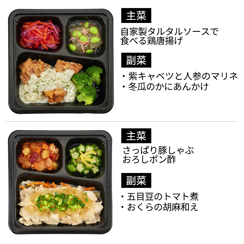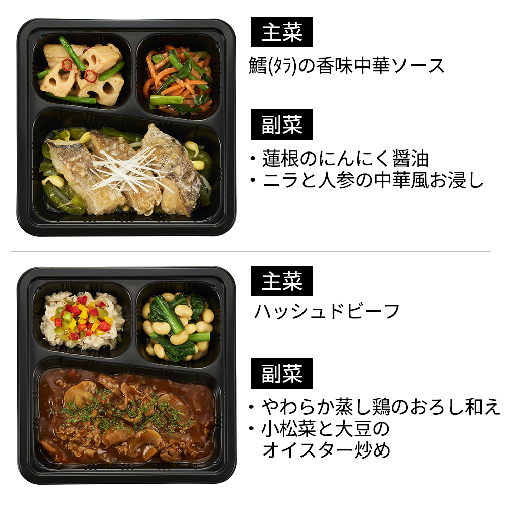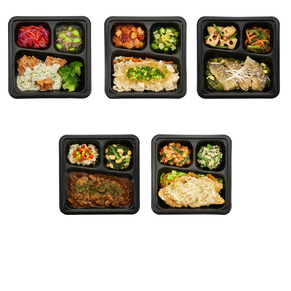 食のそよ風 kanau5食 Bセット (さっぱり豚しゃぶおろしポン酢、タラの香味中華ソース、ハッシュドビーフなど、全5種)