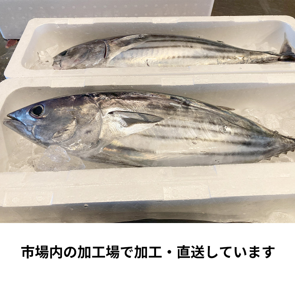「日戻りカツオ」を国産藁で香ばしく藁焼きにし、特製生姜醤油に漬け込みました。厚切りならではの食感と香ばしさが格別です。