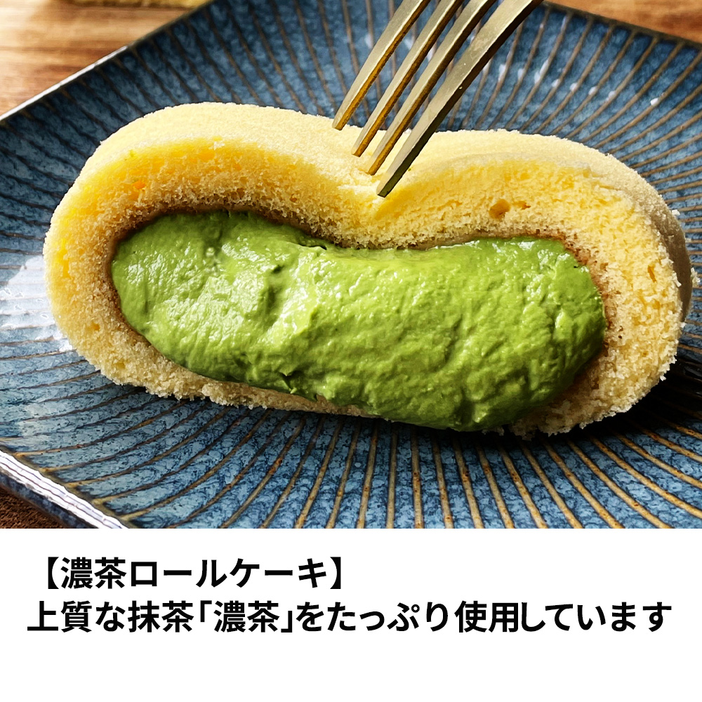 抹茶通の方はもちろん、抹茶を口にした事がない方にもおすすめの、濃茶の味と香りがお口いっぱいに広がるロールケーキです。