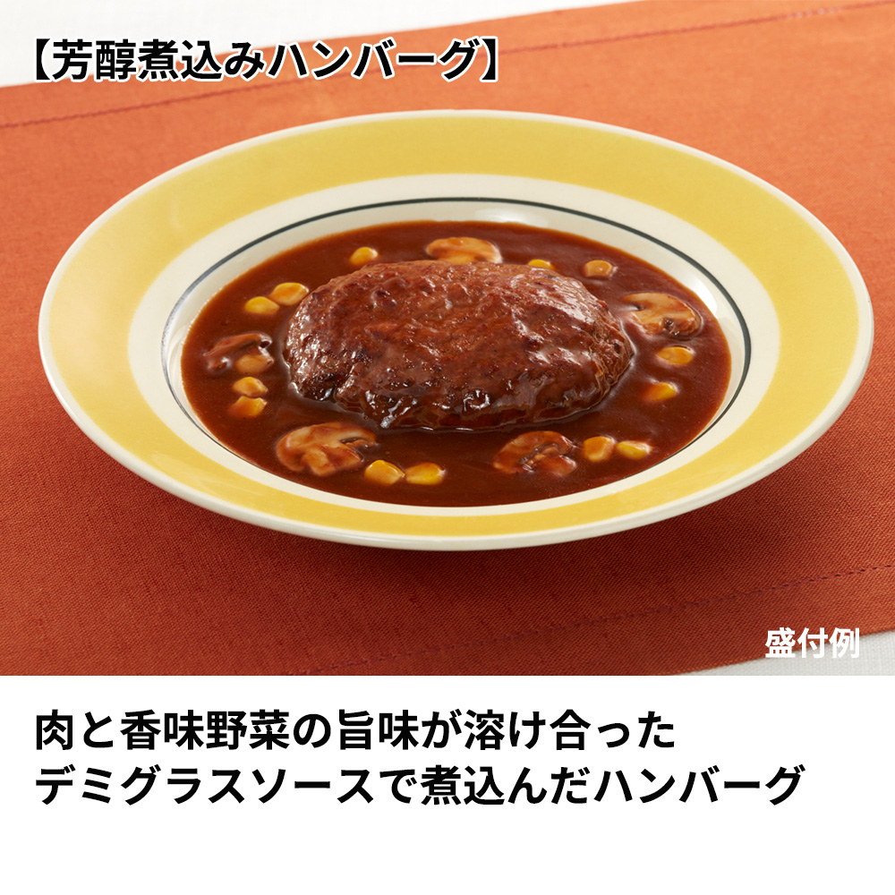 香辛料の豊かな風味が牛肉のおいしさを一層引き立てています。内容量 芳醇煮込みハンバーグ:220グラム×2