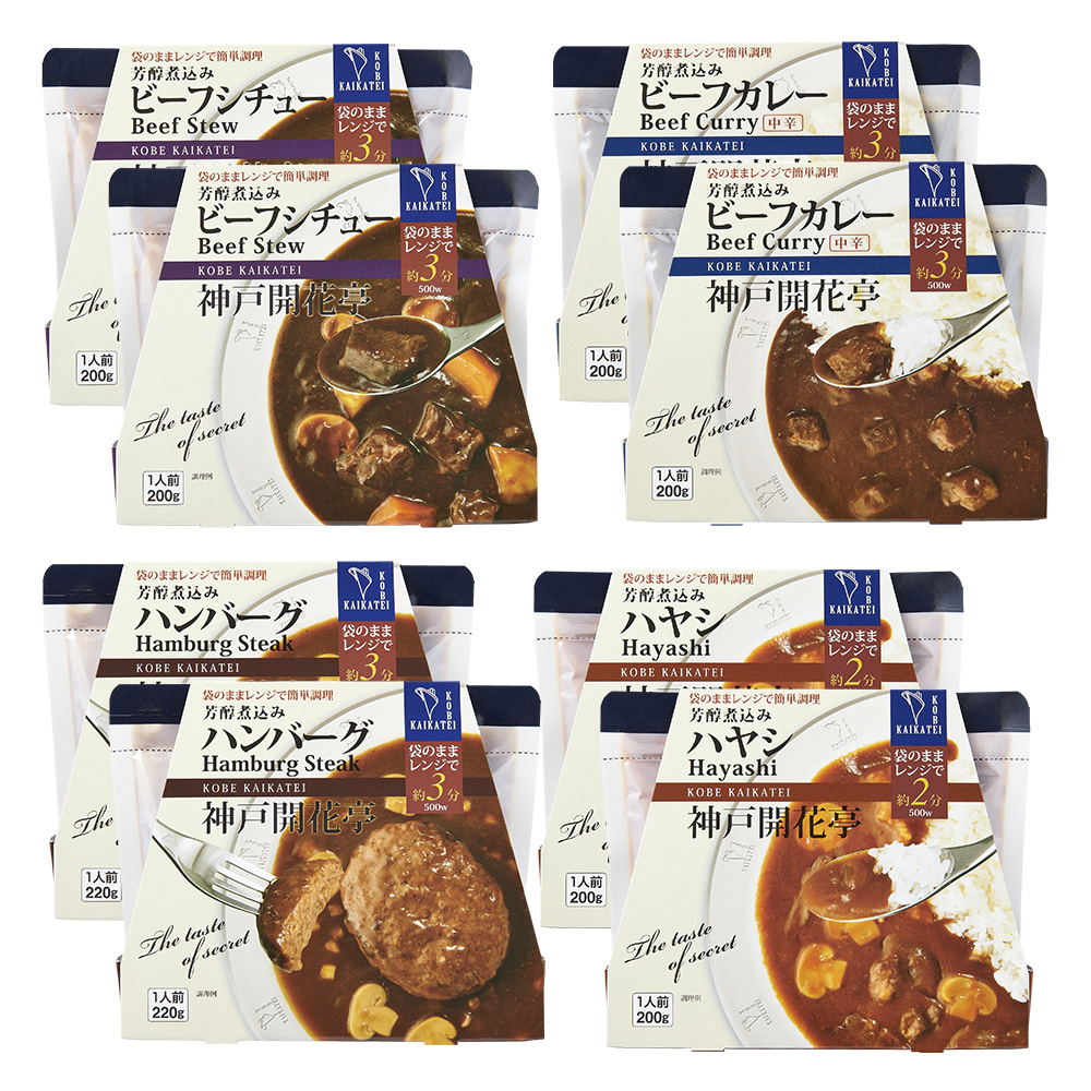 - 神戸の人気惣菜店「神戸開花亭」の人気商品「芳醇煮込み」4種のセットです。