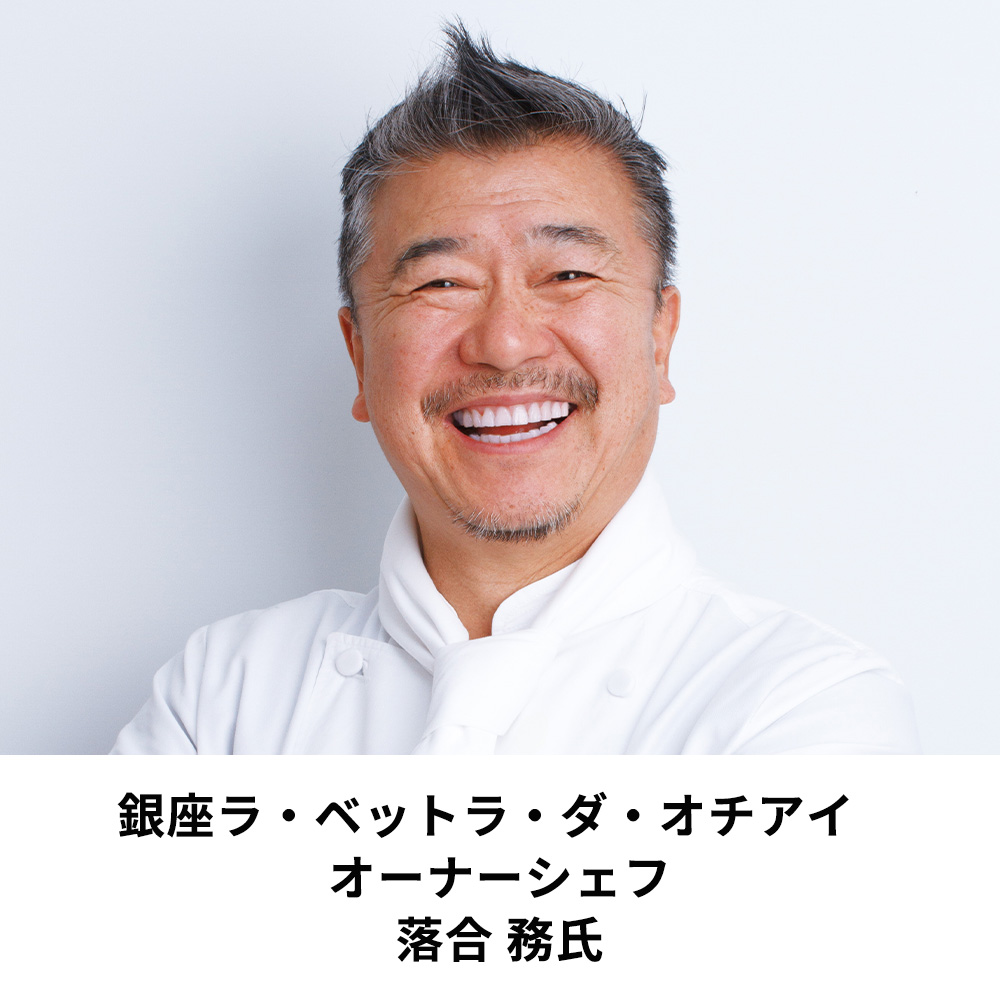 東京・銀座ラ・ベットラ・ダ・オチアイのオーナーシェフ。現・日本イタリア料理協会名誉会長。