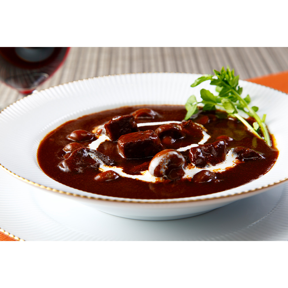 2011月2月六本木にレストラン リューズを開店。様々なメディアで活躍し、ガイドブック等では高評価を得ている。内容量 ビーフシチュー:220g×4 原材料名 牛肉(国産)、マッシュルーム、人参、砂糖、デミグラスソース、小麦粉、ソテーオニオン、ワイン、トマトペースト、肉エキス、食用油脂、バター、澱粉、食塩、ブイヨン風味パウダー、香辛料/カラメル色素、調味料(アミノ酸等)、酸味料、香辛料抽出物、香料、(一部に小麦・乳成分・牛肉・ごま・大豆・鶏肉・豚肉・ゼラチンを含む) アレルゲン 小麦・乳成分・牛肉・ごま・大豆・鶏肉・豚肉・ゼラチン 賞味期限 製造日より常温720日 保存方法 直射日光を避け常温で保存してください 備考 調理方法:湯せん(約5分)