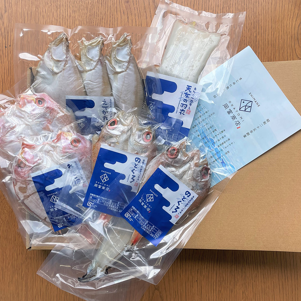 - 岡富商店おすすめの魚を詰め合わせた一夜干しのセット「弁天」。