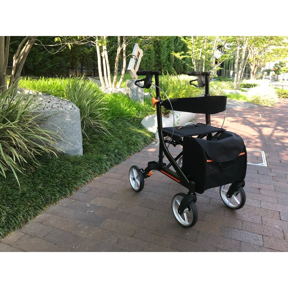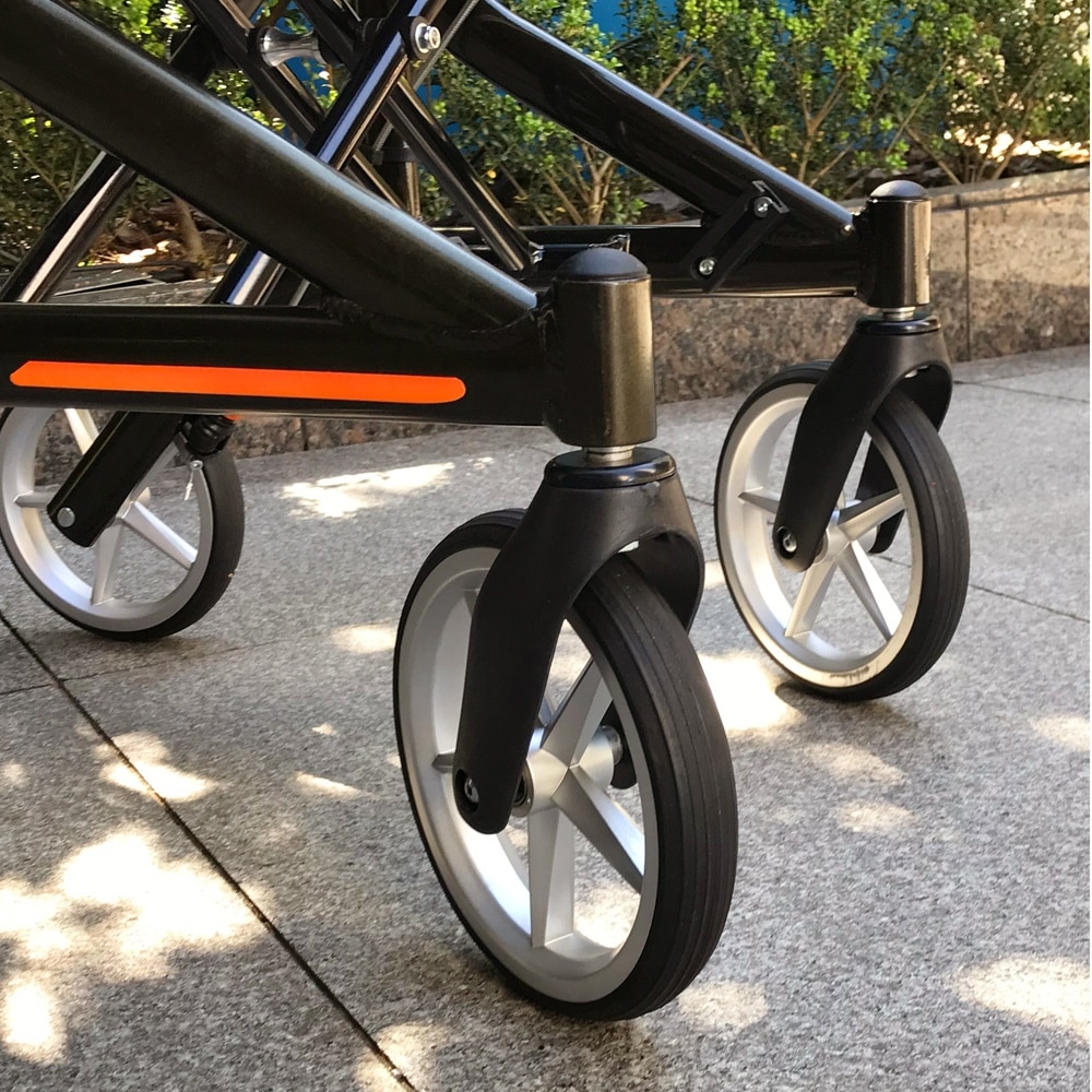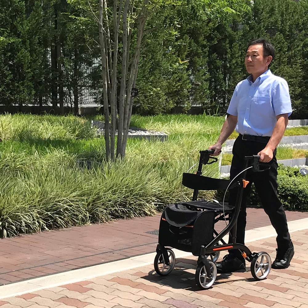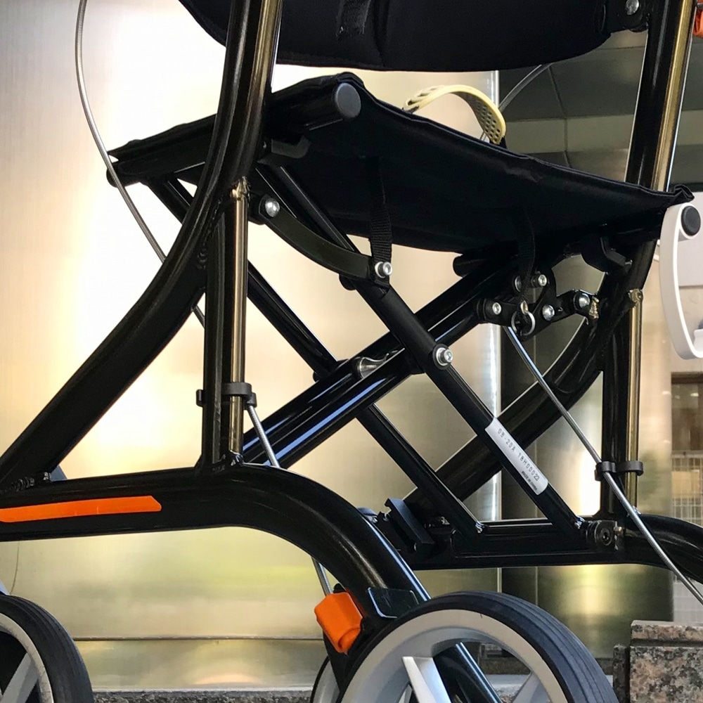- フレーム構造にダブルクロスバーを採用。歩行バランスの悪い方にも横揺れ、縦揺れに強く安心してお使いいただける歩行車です。