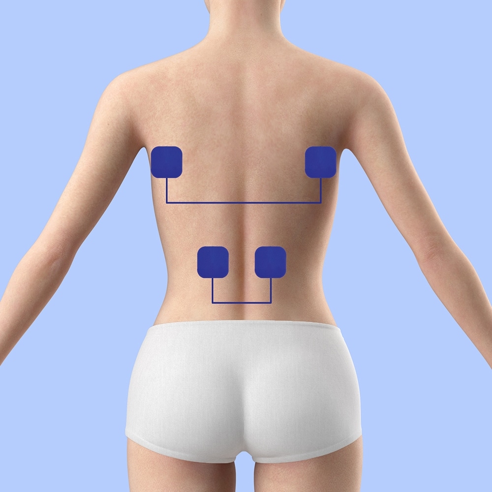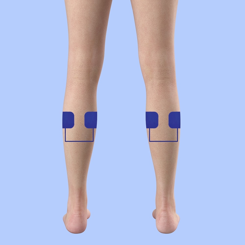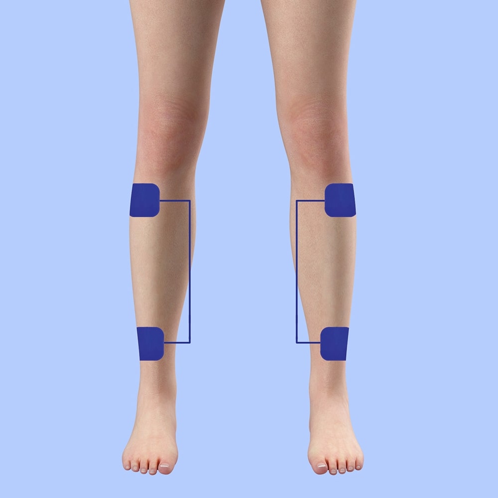 A)ひとつの筋肉に2枚貼り付けるのが基本です。