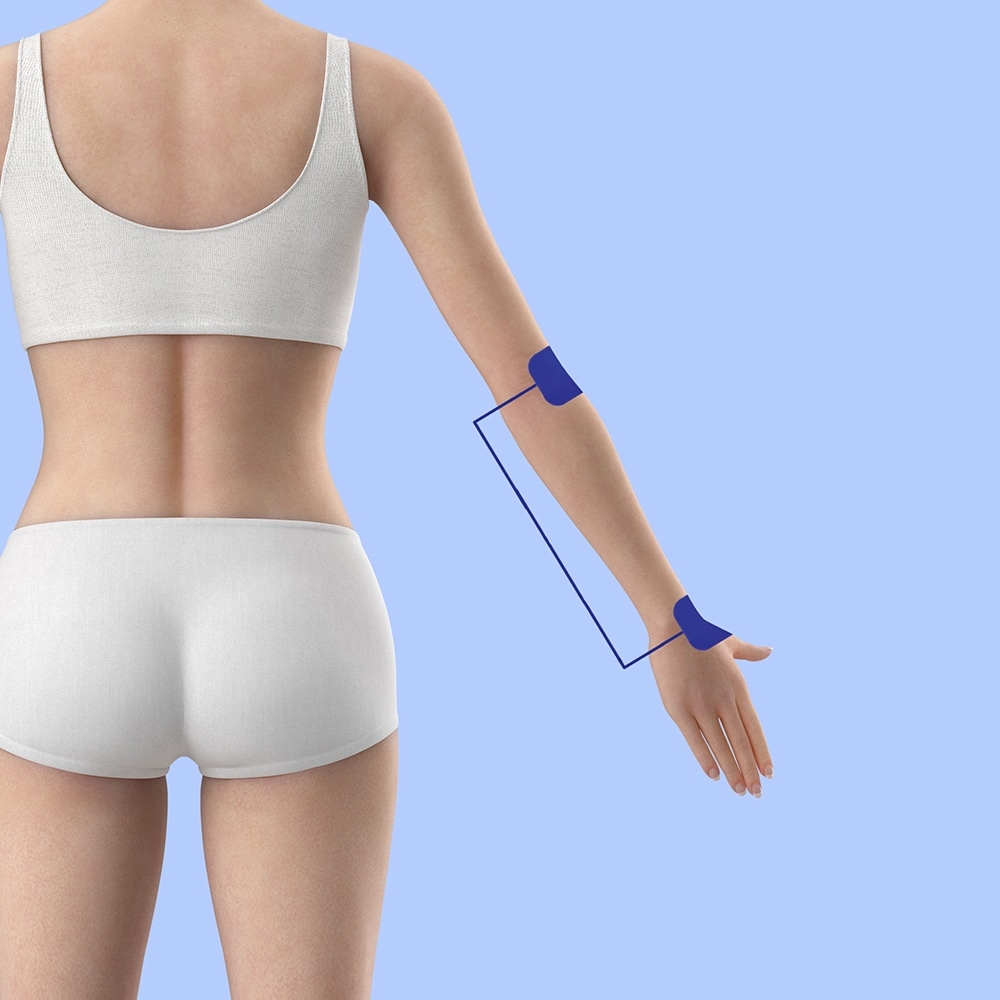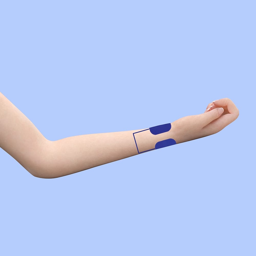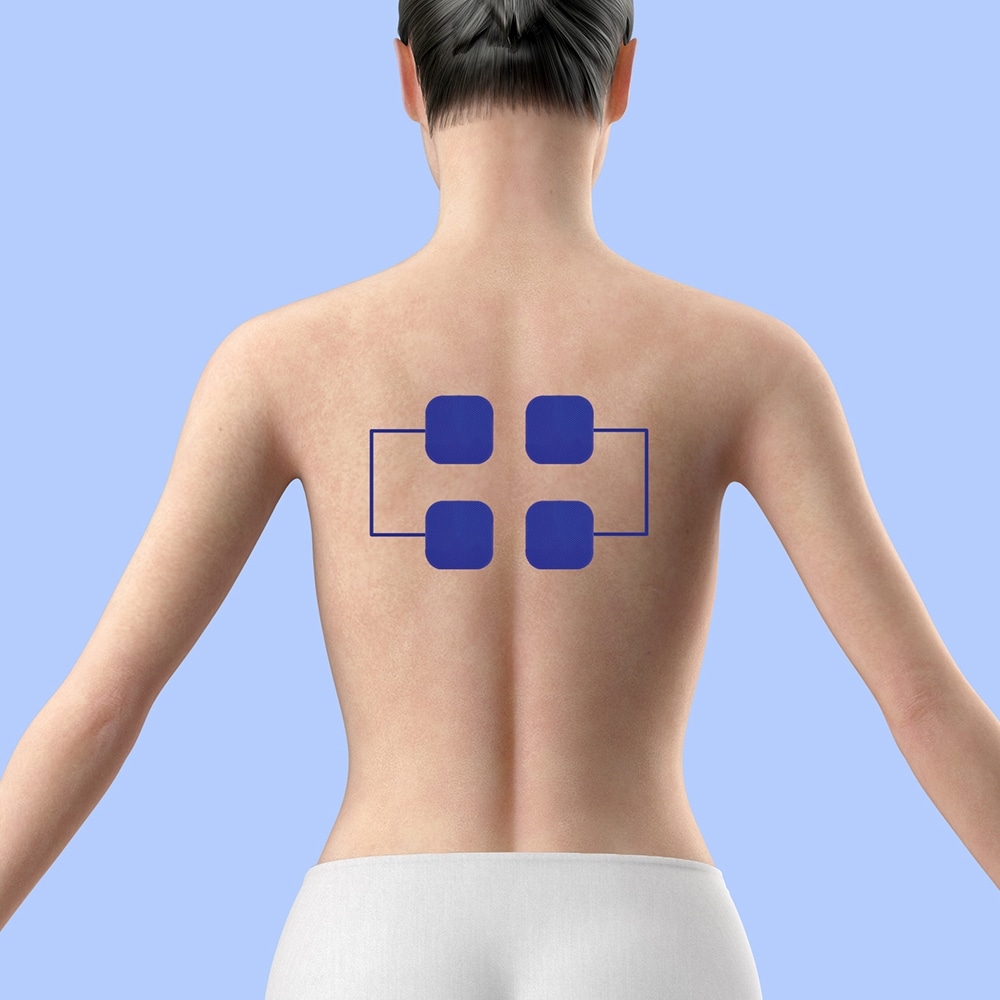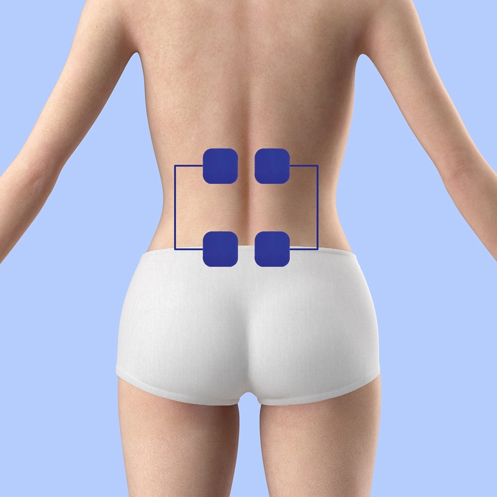 A)ひとつの筋肉に2枚貼り付けるのが基本です。