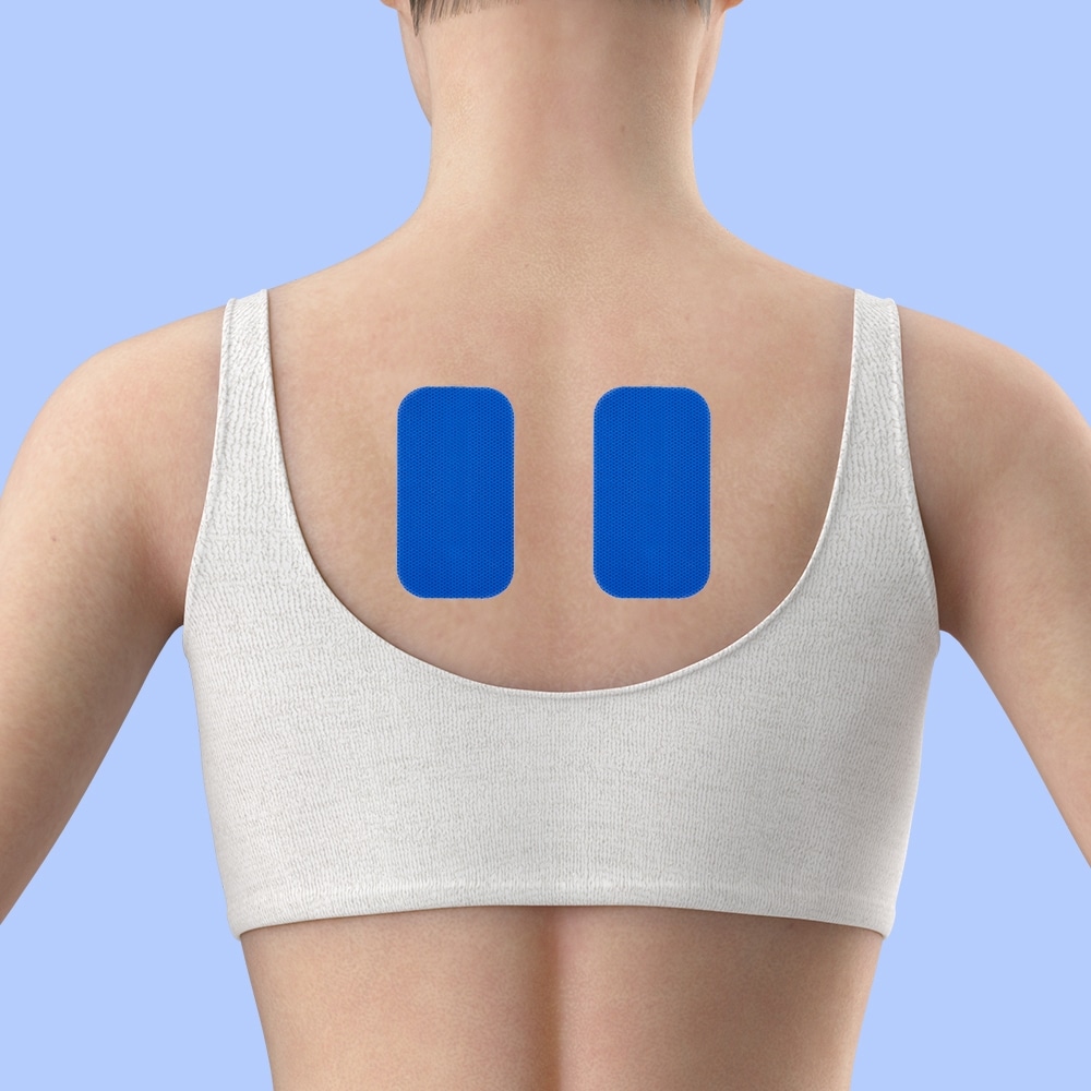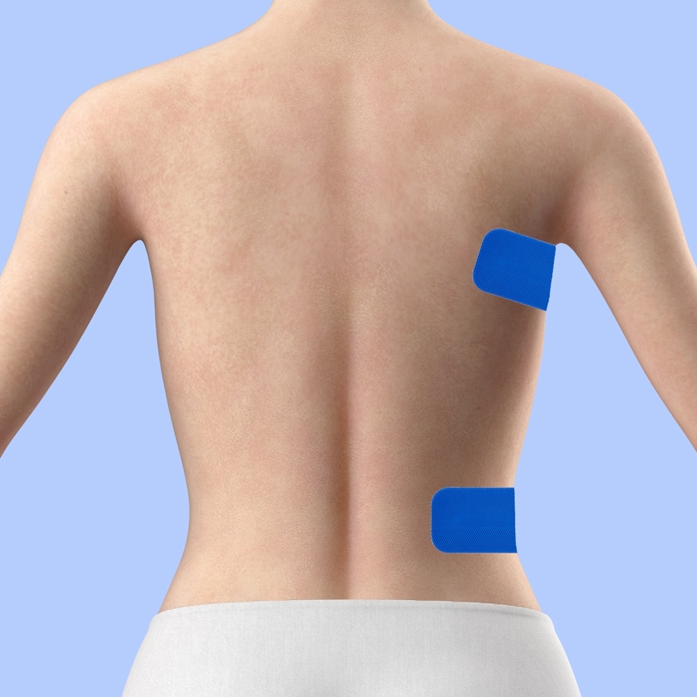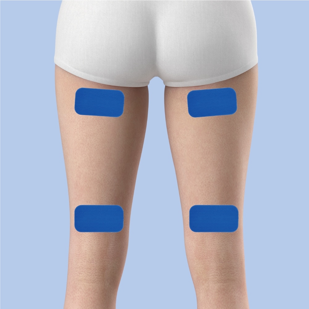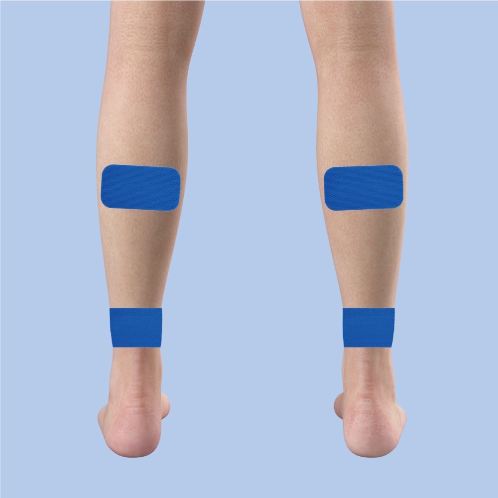 A)関節をまたがずに、1つの筋肉に2枚貼り付けるのが基本です。