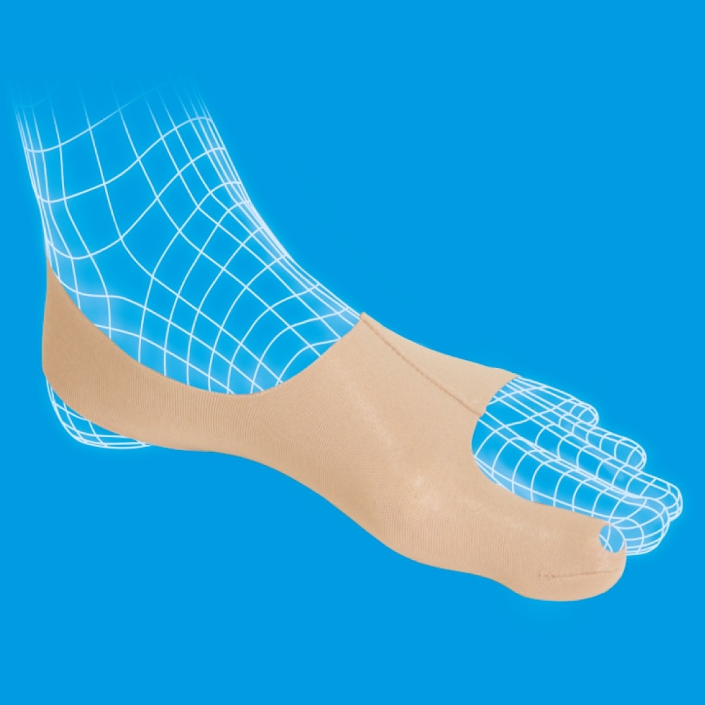 - 特長1:着用により自然と親指がひねられる形状です。外反ぎみの親指を違和感なくサポートしたい方におすすめです。