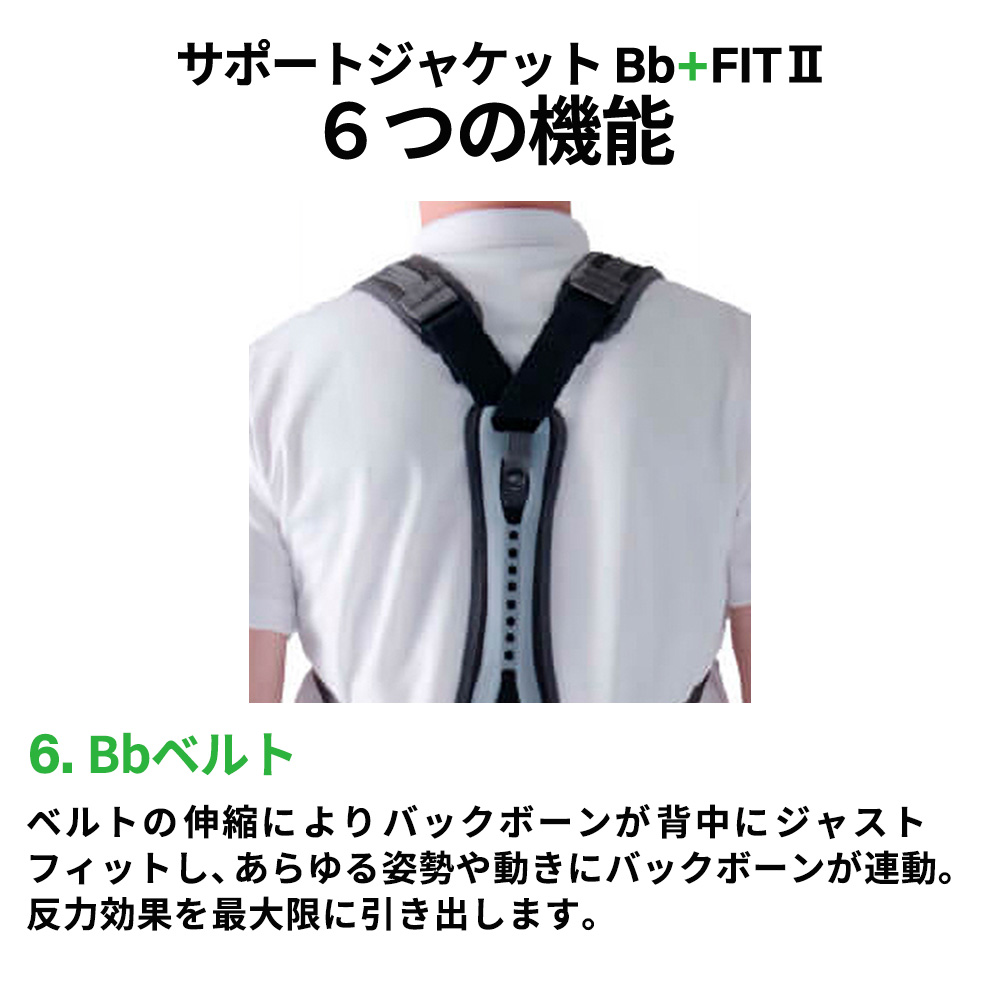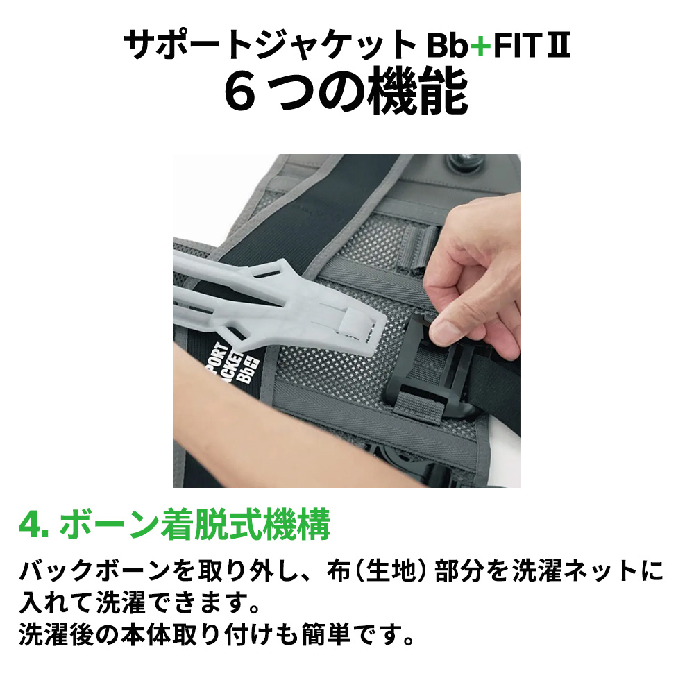 - 第二の背骨Bb+(バックボーンプラス)をジャケット背面に装着することで、背骨と腰を理想的な姿勢へ誘導します。作業に伴う前かがみの姿勢を抑えることで、背中や腰にかかる大きな負担を軽減します。