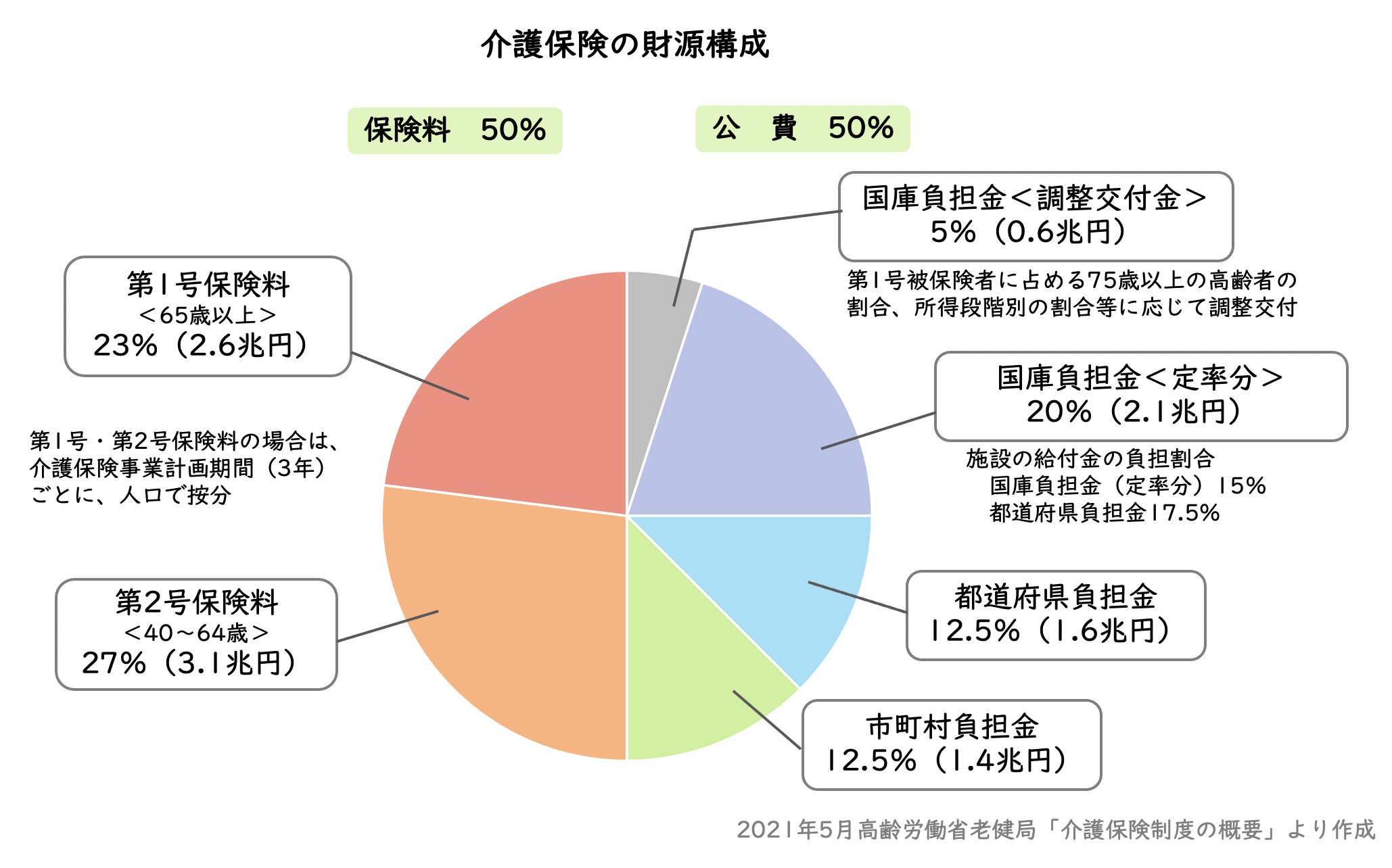 40歳以上の国民から徴収した保険料と税金で運営されています。