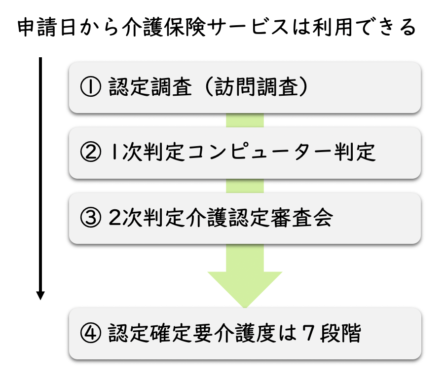 要介護認定の申請後は、次の手順で要介護認定が決まります。