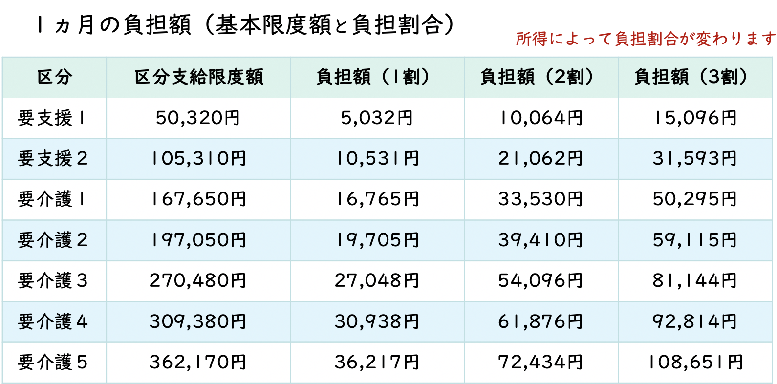 介護保険は介護度に応じて限度額(区分支給限度額)が定められており、基本的にはこの範囲内で介護サービスを利用していきます。 介護度が重いほど限度額の幅は広がります。限度額以上のサービスを受けることはできますが、超えた分は全額自己負担となります。