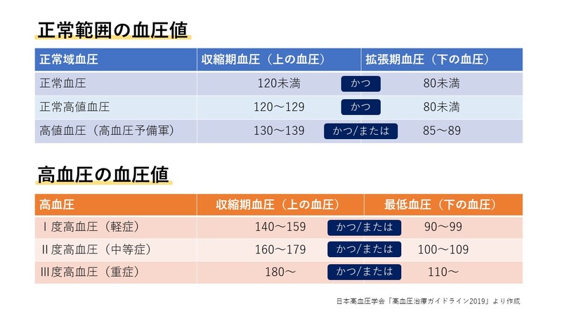 また、2019年には、日本高血圧学会にて最高血圧130~139/最低計血圧80~89mmHgを「高値血圧」と位置付けられました。