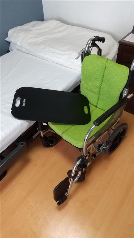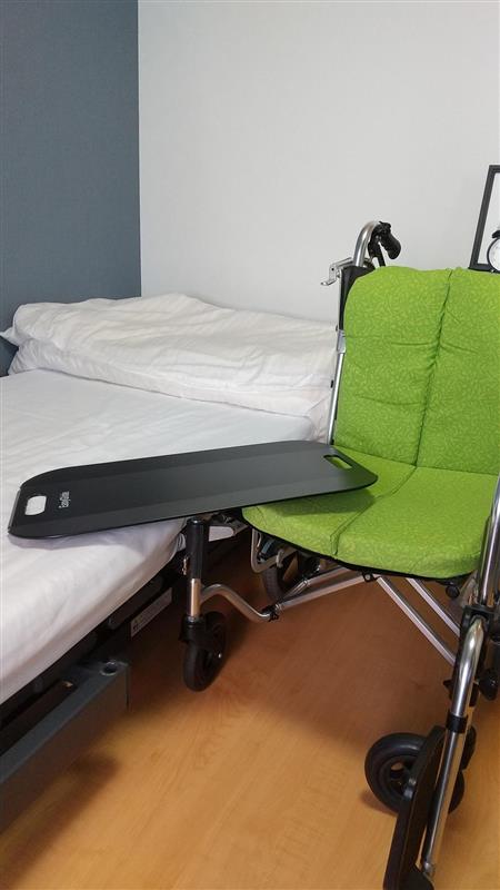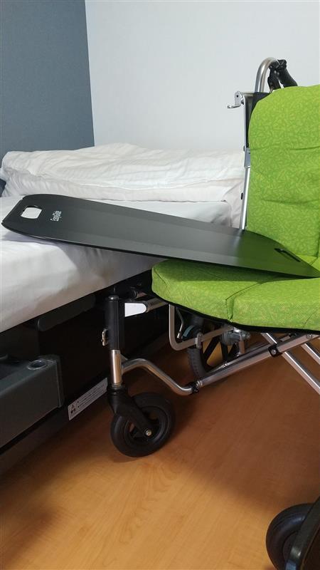 トランスファーボード(別名、スライディングボード)とは、ベッドや車いすへの移乗の際に、被介助者が座った姿勢のまま、横にお尻を滑らせることで移乗することができる用具です。